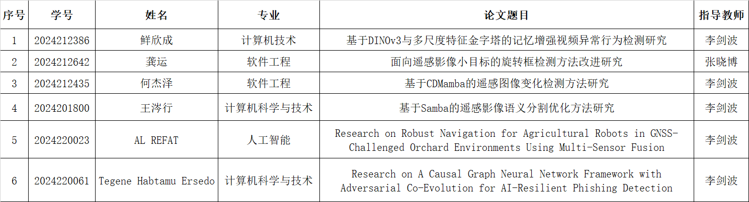 【硕士开题】李剑波、张晓博老师指导的2024级硕士研究生开题公告