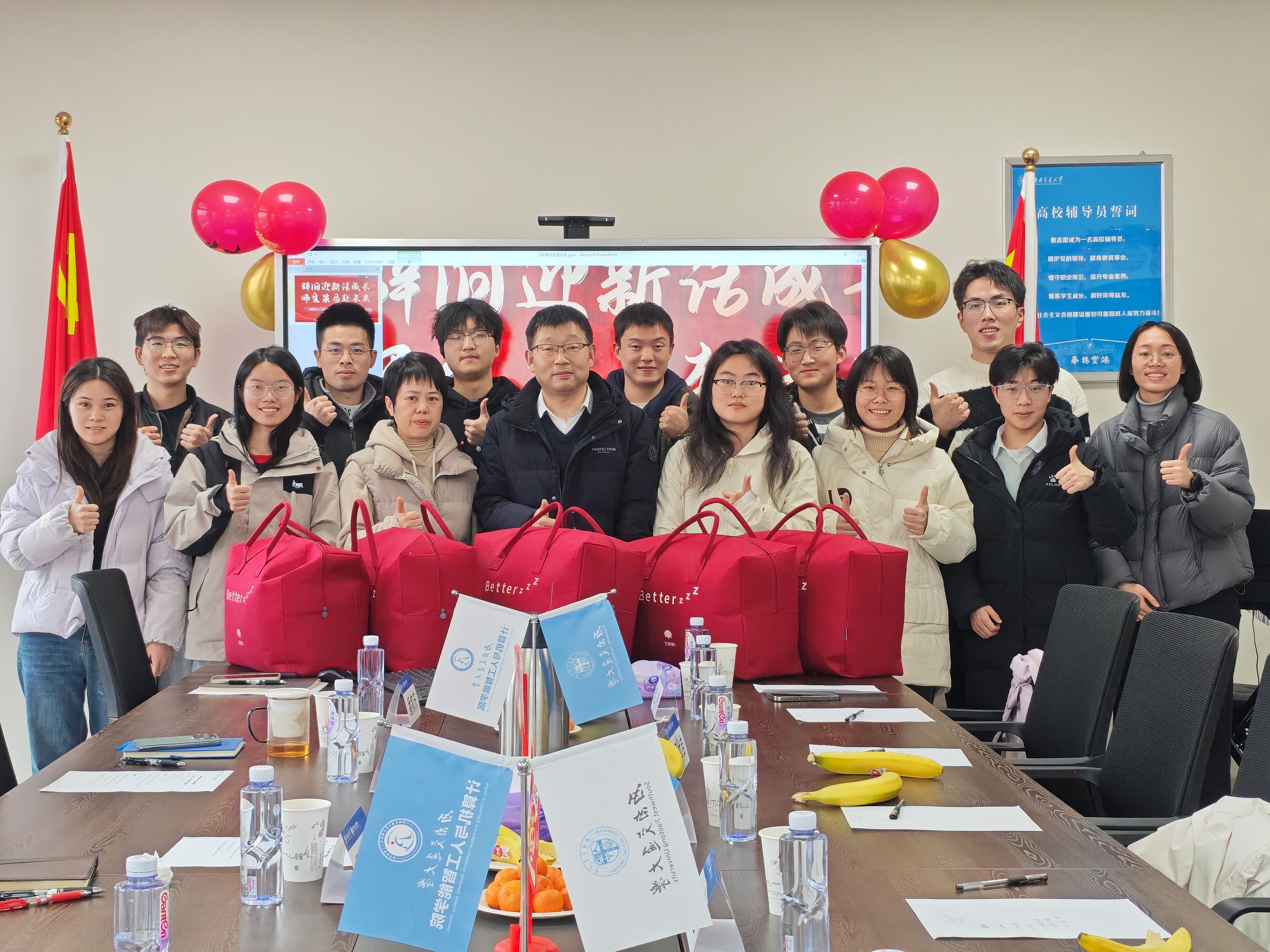 为营造温馨和谐的育人氛围,进一步强化师生交流、倾听学生心声,促进学生全面成长,2025年12月29日下午,学院2026年“庆元旦·迎新春”师生座谈会在犀浦校区X31424会议室顺利召开。本次座谈会以“辞旧迎新话成长·师生策马赴未来”为主题,旨在总结一年来的学习与成长经验,展望新一年的发展方向。学院党委书记翟东海、党委副书记肖静、新生辅导员们及各年级学生代表参与本次活动。