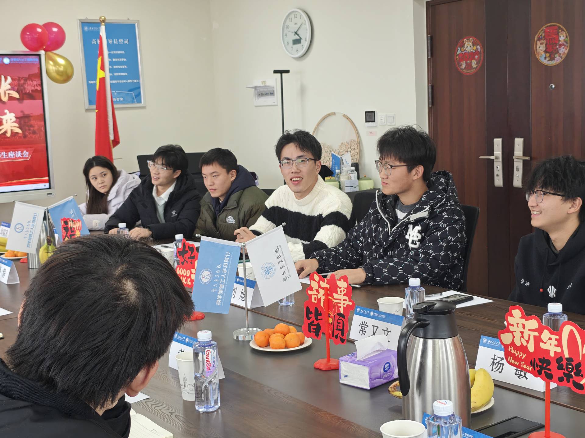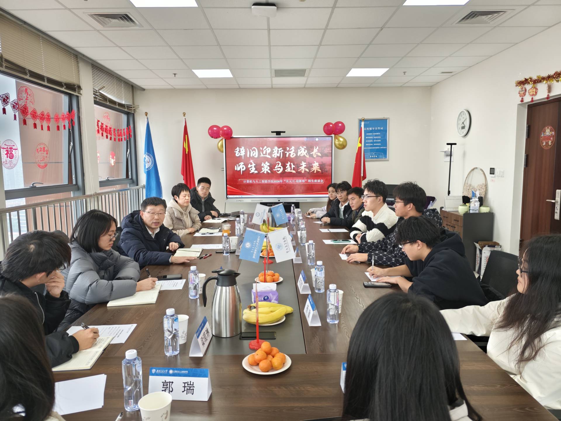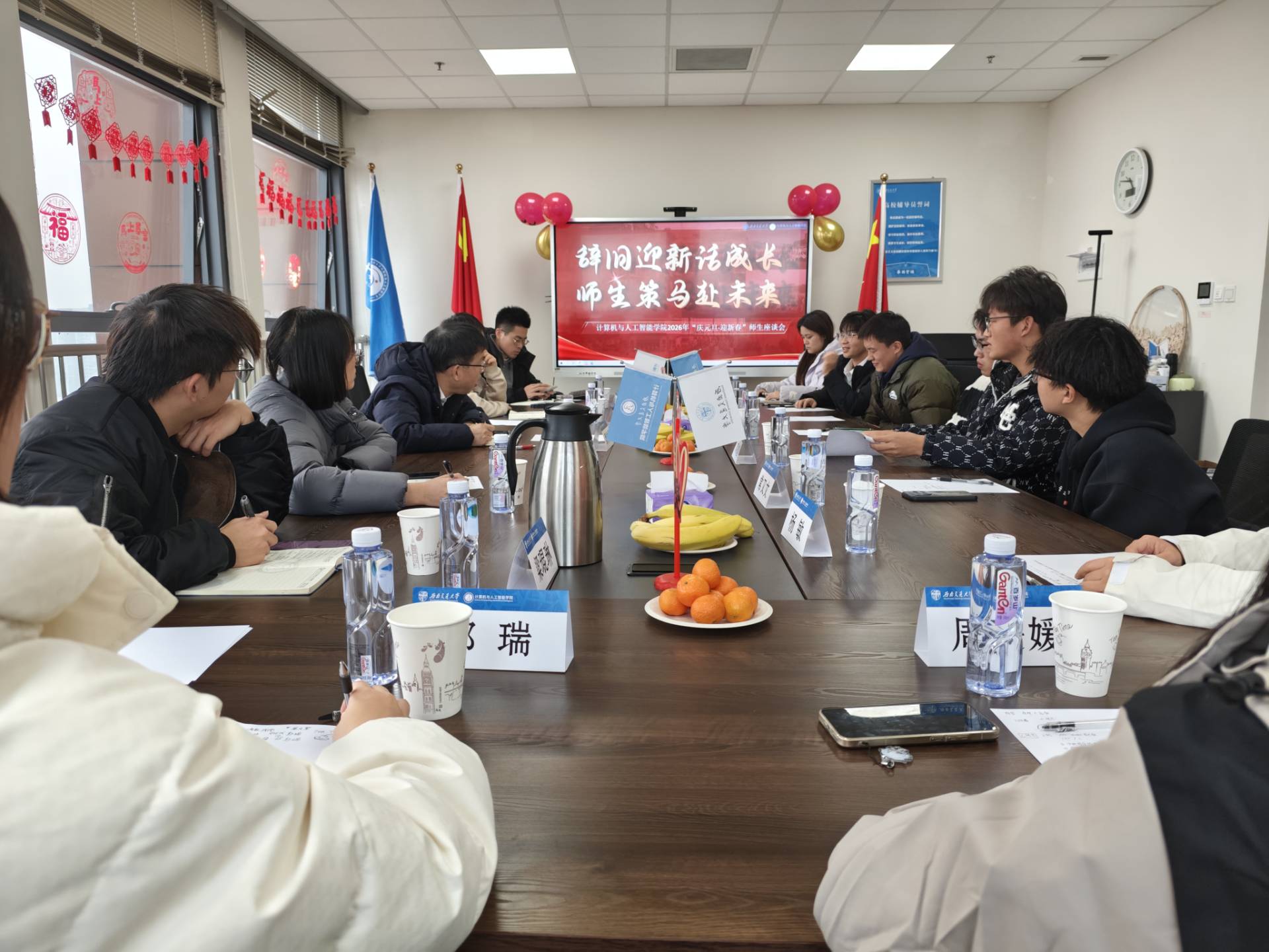 为营造温馨和谐的育人氛围,进一步强化师生交流、倾听学生心声,促进学生全面成长,2025年12月29日下午,学院2026年“庆元旦·迎新春”师生座谈会在犀浦校区X31424会议室顺利召开。本次座谈会以“辞旧迎新话成长·师生策马赴……
