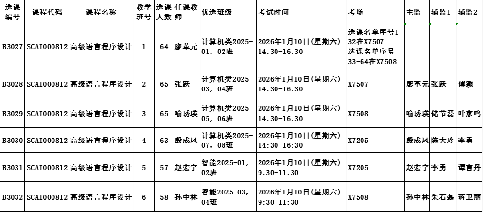 高级语言程序设计2025-2026(1)期末上机考试通知
