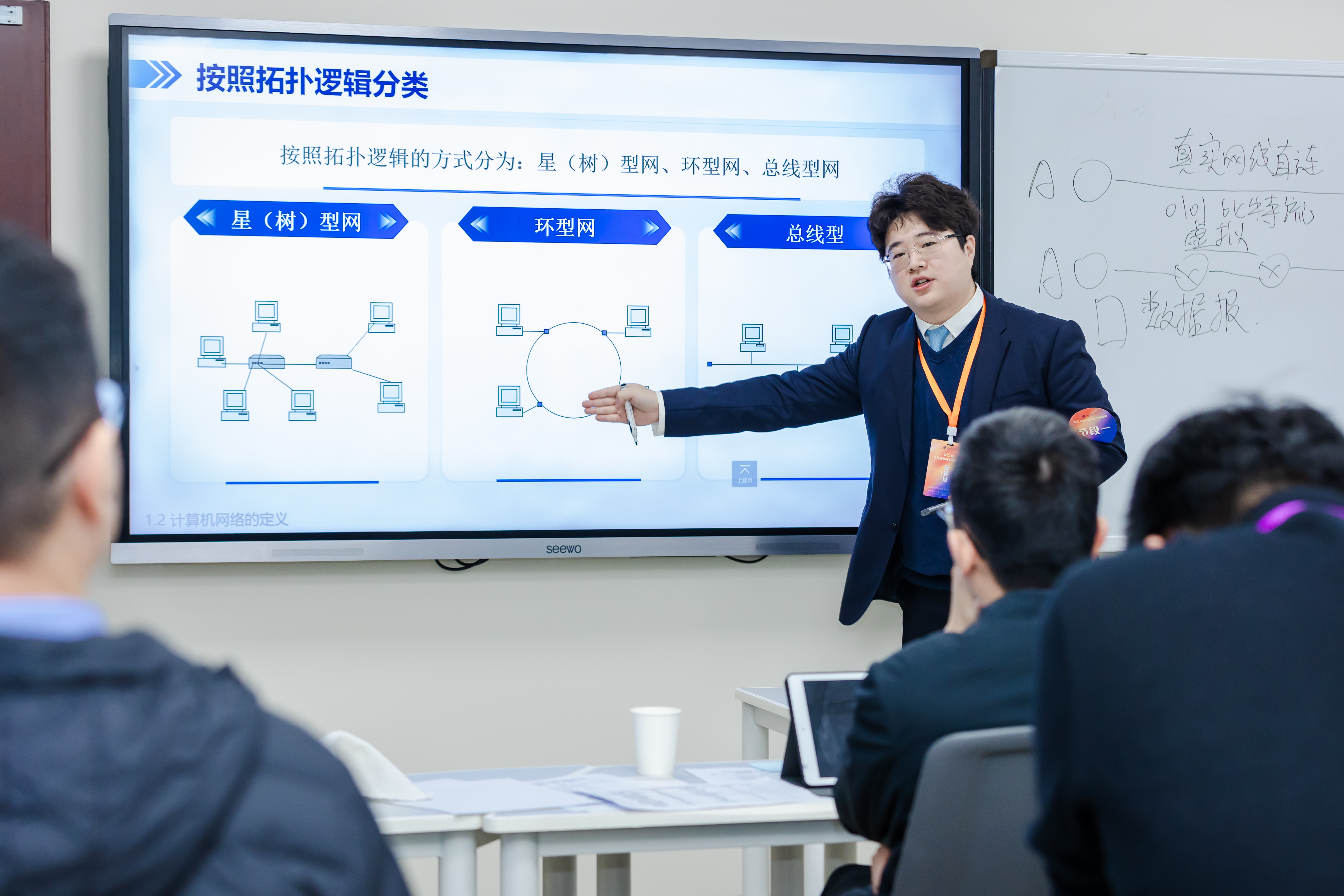 郑丹阳老师讲述“计算机网络的定义”相关内容。课程以学生熟悉的游戏延迟、社交软件网络抖动等生活场景为切入点,激发学生探究网络技术本质的兴趣。通过启发式提问和互动讨论,引导学生系统梳理网络分类方法,并自然融入“技术服务于人民”的思政元素,实现知识传授与价值引领的有机统一。整堂课设计严谨、表达流畅、互动充分,展现了他扎实的教学功底与独特的教学风格,最终荣获一等奖。