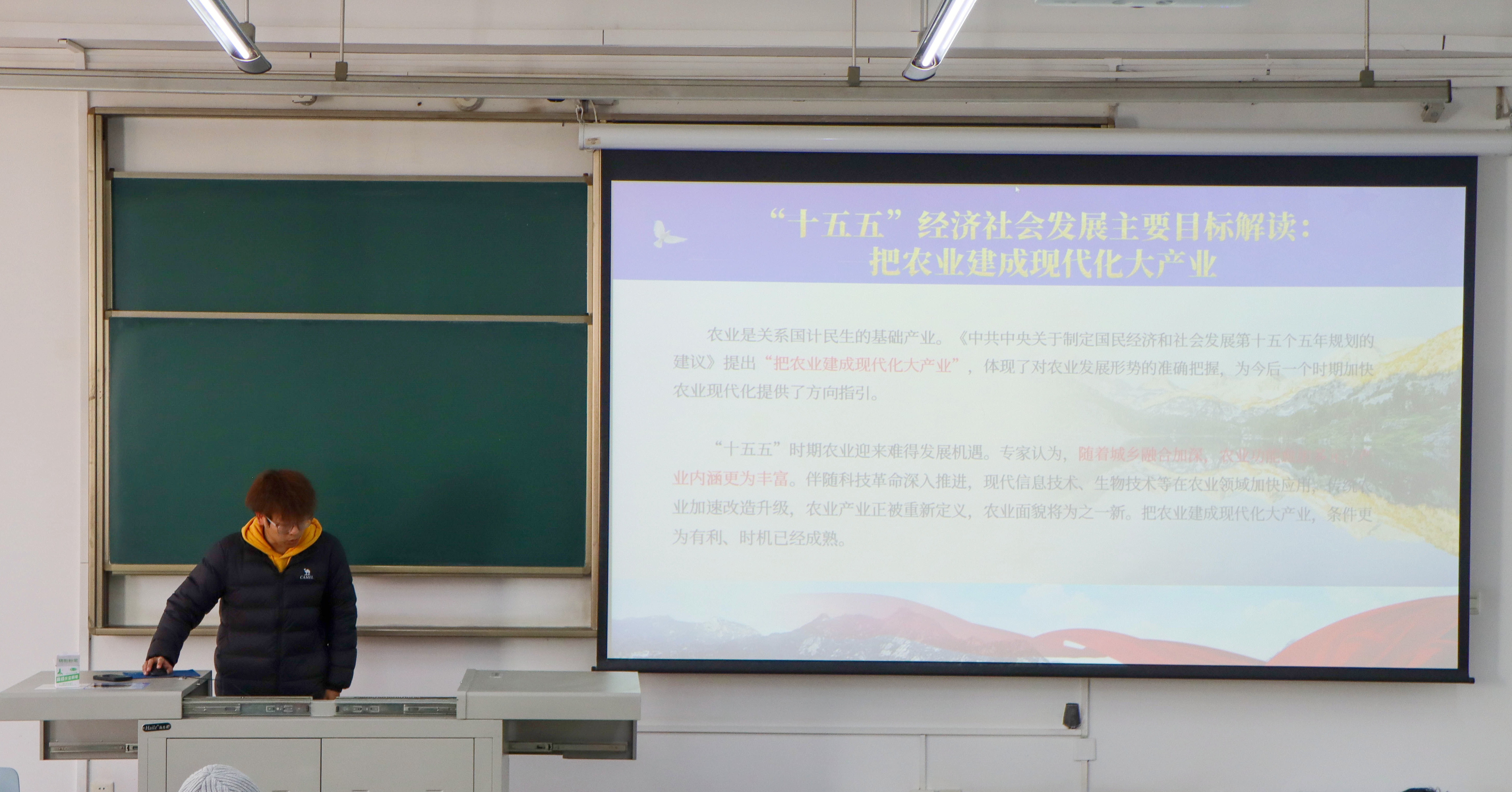 在政策学习环节,主持人何乃鑫详细解读了《数字乡村发展行动计划(2022-2025年)》。该计划明确到2025年实现乡村4G深化普及、5G创新应用,推动智慧农业落地与数字化治理能力提升,其四大重点方向与 AI、大数据相关的重点任务,为同学们指明了技术赋能的实践路径。随后,大家共同学习了二十届四中全会精神及“十五五”规划建议中关于农业农村现代化的部署,深刻认识到“把农业建成现代化大产业”的战略意义,以及科技自立自强在乡村振兴中的核心作用。