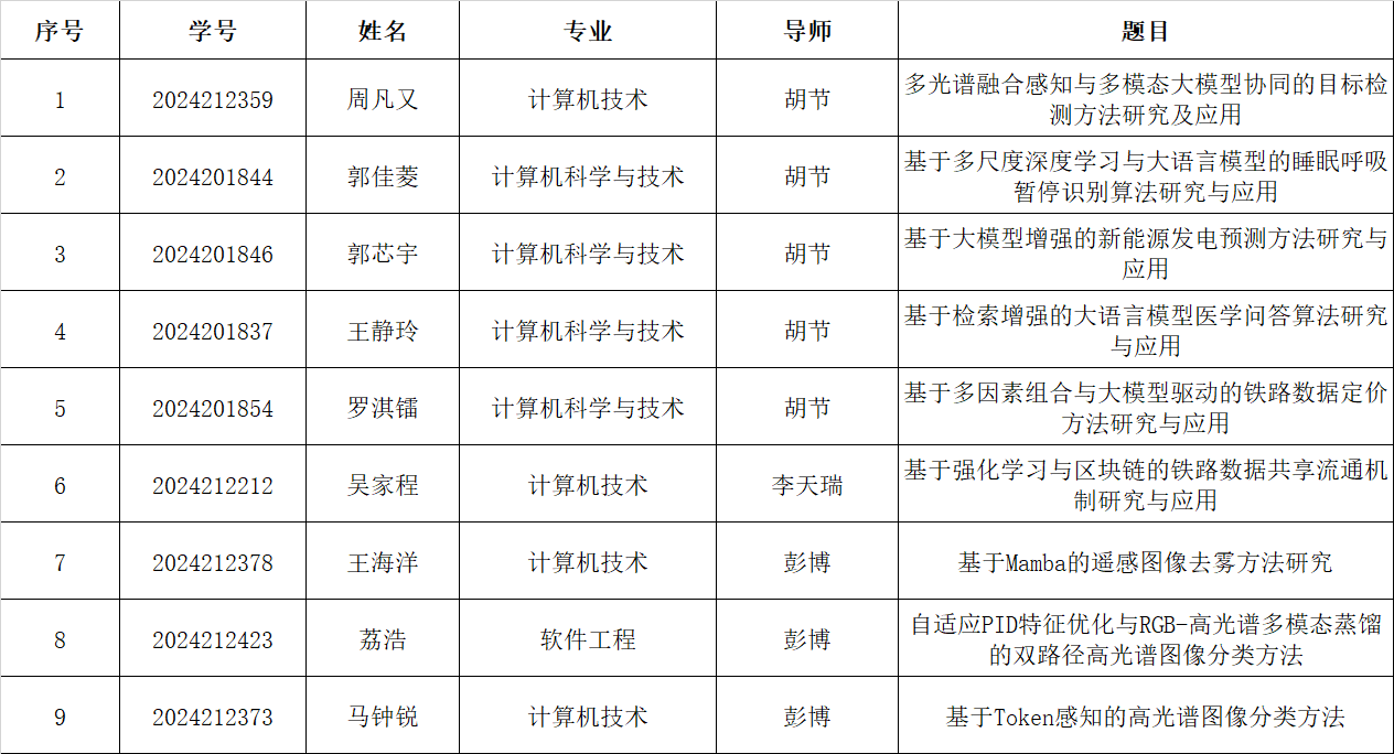 开题时间: 2026年2月26日(周四)下午2:00-4:00报告地点: 西南交通大学犀浦校区 X9431 (#腾讯会议:561-147-344)专家组成员 彭博 教授/博导 计算机与人工智能学院胡节……