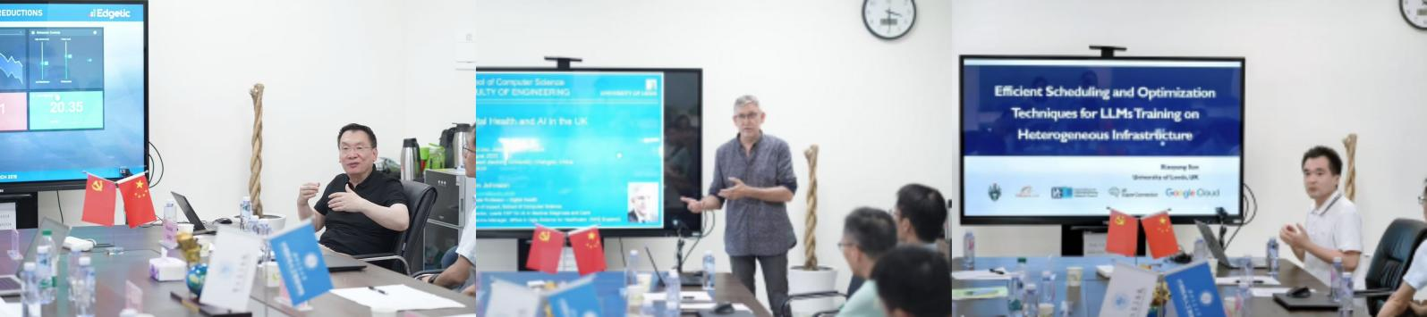 利兹大学代表团也积极分享了该校的科研力量,其中包括Jie Xu 团队、Johnson Owen 团队和 Xiaoyang Sun团队的基本情况及其在异常检测设计、容错设计、调度优化设计等方向的研究重点,为双方寻找合作契合点提供了重要参考。