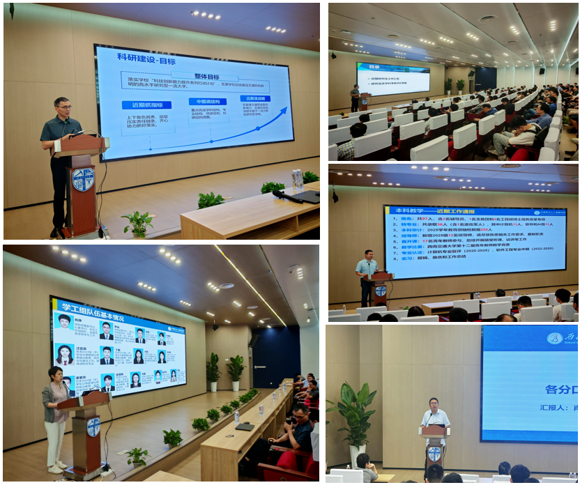 2025年9月18日下午,为进一步统一思想、凝聚共识,计算机与人工智能学院全院教职工大会在犀浦校区图书馆一号报告厅顺利召开。学院领导班子成员及全体教职工参加了会议,会议由李天瑞院长主持。