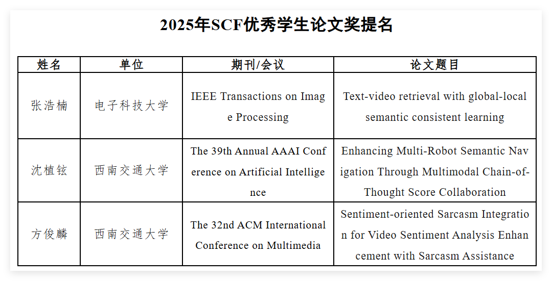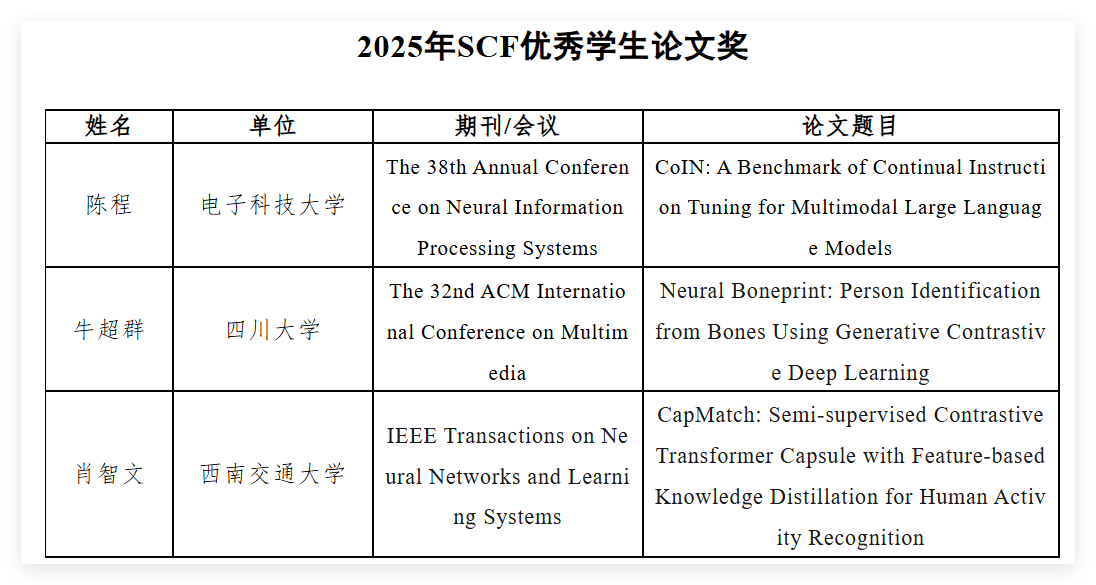 【SCF获奖】我院研究生荣获2025年“SCF年度优秀学生论文奖”