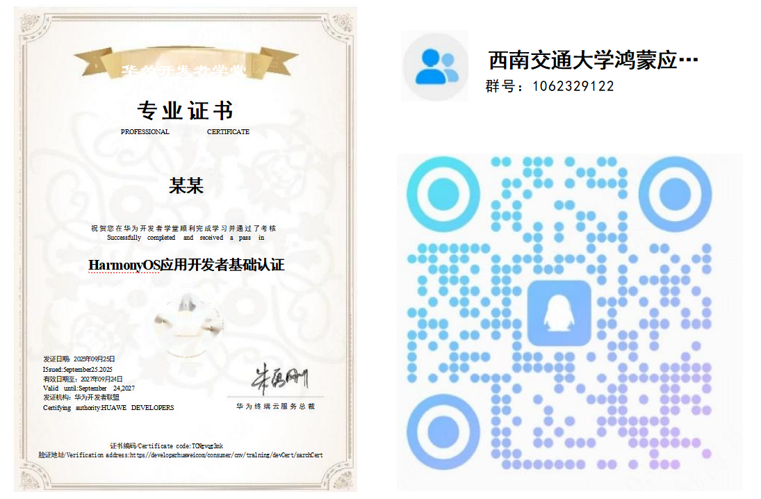 ● 提供认证路径:引导和帮助学生获得官方的HarmonyOS应用开发者认证,提升就业竞争力