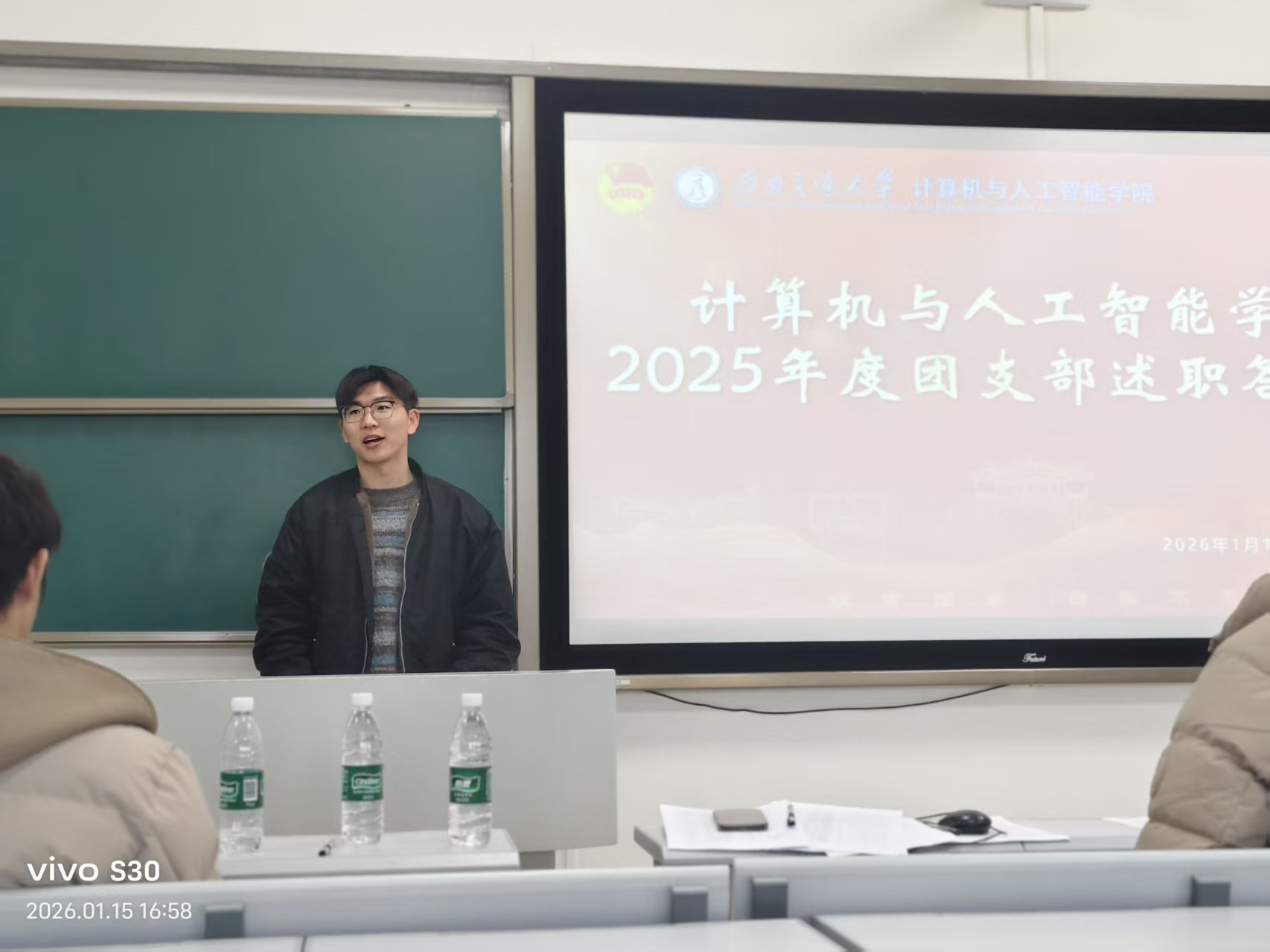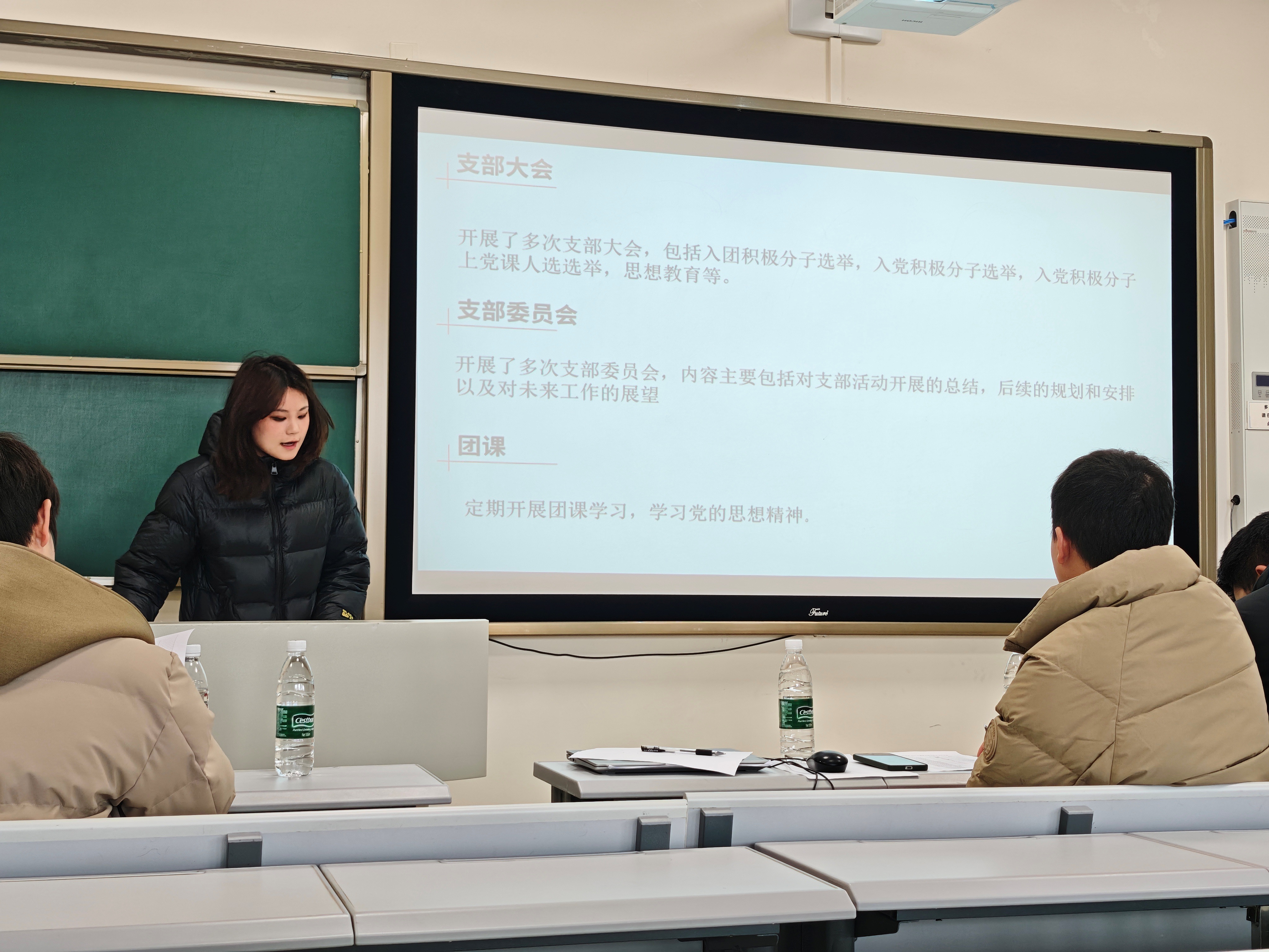 为深入学习贯彻党的二十大和二十届历次全会精神,持续强化基层团组织的政治功能与服务效能,全面提升团干部履职能力与综合素质,1月15日下午,学院团委在X30610开展了2025年度团支部“对标定级”述职答辩。辅导员丁毅、梁琨琳、杜健豪、杨鹏伟、苏晨旭出席并担任评委,学院7个年级共计53个团支部到场参与述职答辩,2025级新生团支部委员列席观摩。